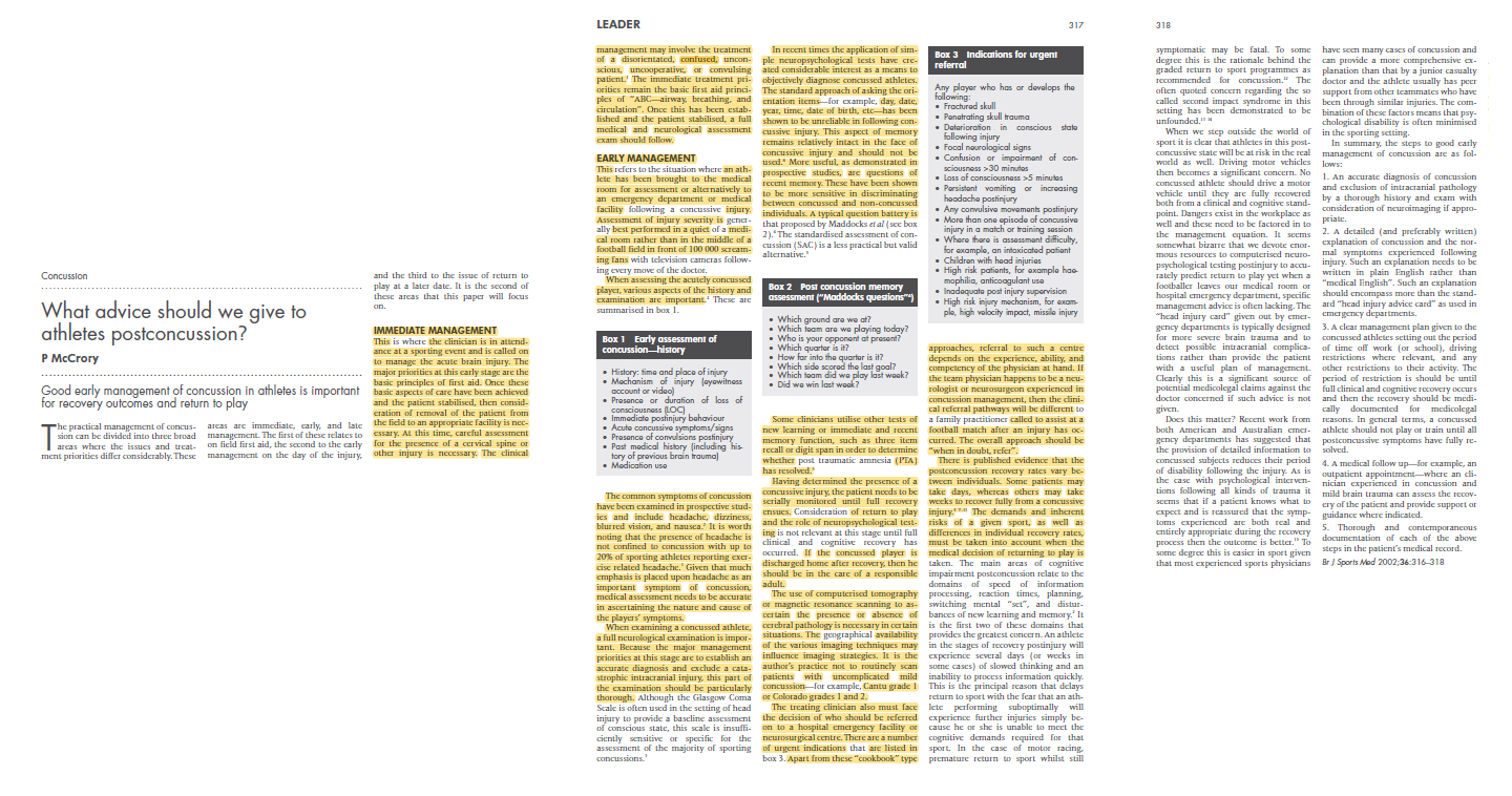 McCrory, P. (2002). What advice should we give to athletes postconcussion? British Journal of Sports Medicine, 36(5), 316–318. https://doi.org/10.1136/bjsm.36.5.316